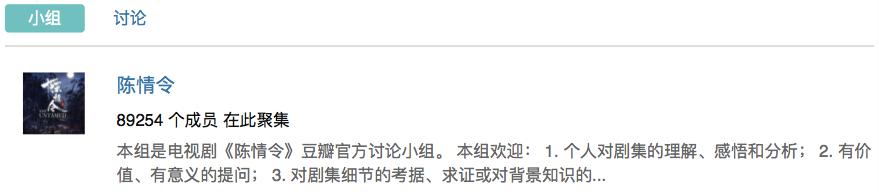 豆瓣评分从开分4.8回升至7.9的《陈情令》,总播放量超52亿。剧集豆瓣小组组员超8万人,小组讨论量达1.8万,在小众圈层中迸发爆款势能。