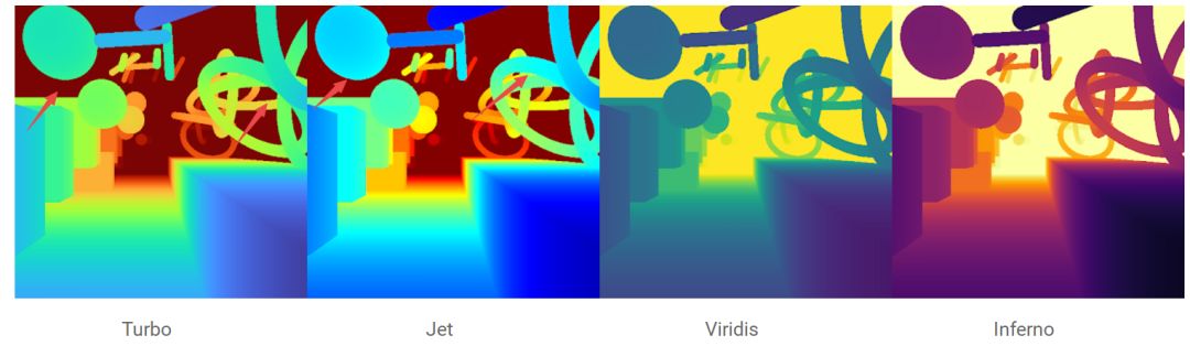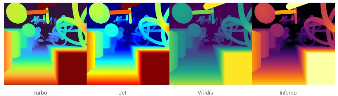 谷歌的研究人员希望解决这些颜色映射中存在的问题,为计算机视觉和机器学习提出更好的彩色映射方案,提出了一种新的映射机制——Turbo。它可以有效除了伪细节、错误的颜色带,并为色盲人士提供更为准确的信息。Turbo针对多种可视化任务进行了手工调教,确保对视觉信息进行有效呈现。