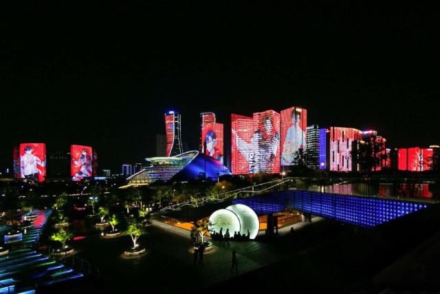 杭州钱江新城的叶修庆生灯光秀