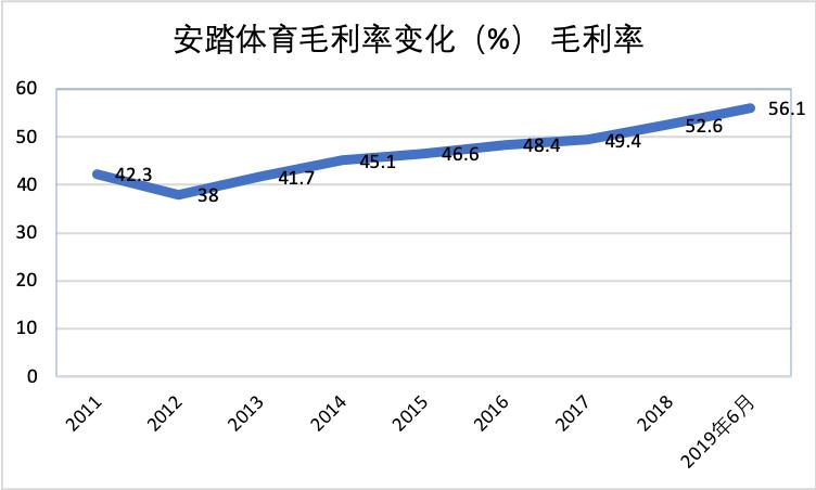 如此高的毛利率在服装行业极其少见,同期安踏主品牌的毛利率是42.5%,李宁是49.7%,阿迪达斯 2018财年的毛利也不过50.4%。得益于FILA的高毛利,安踏集团期内的毛利率也上涨1.8%至56.1%。