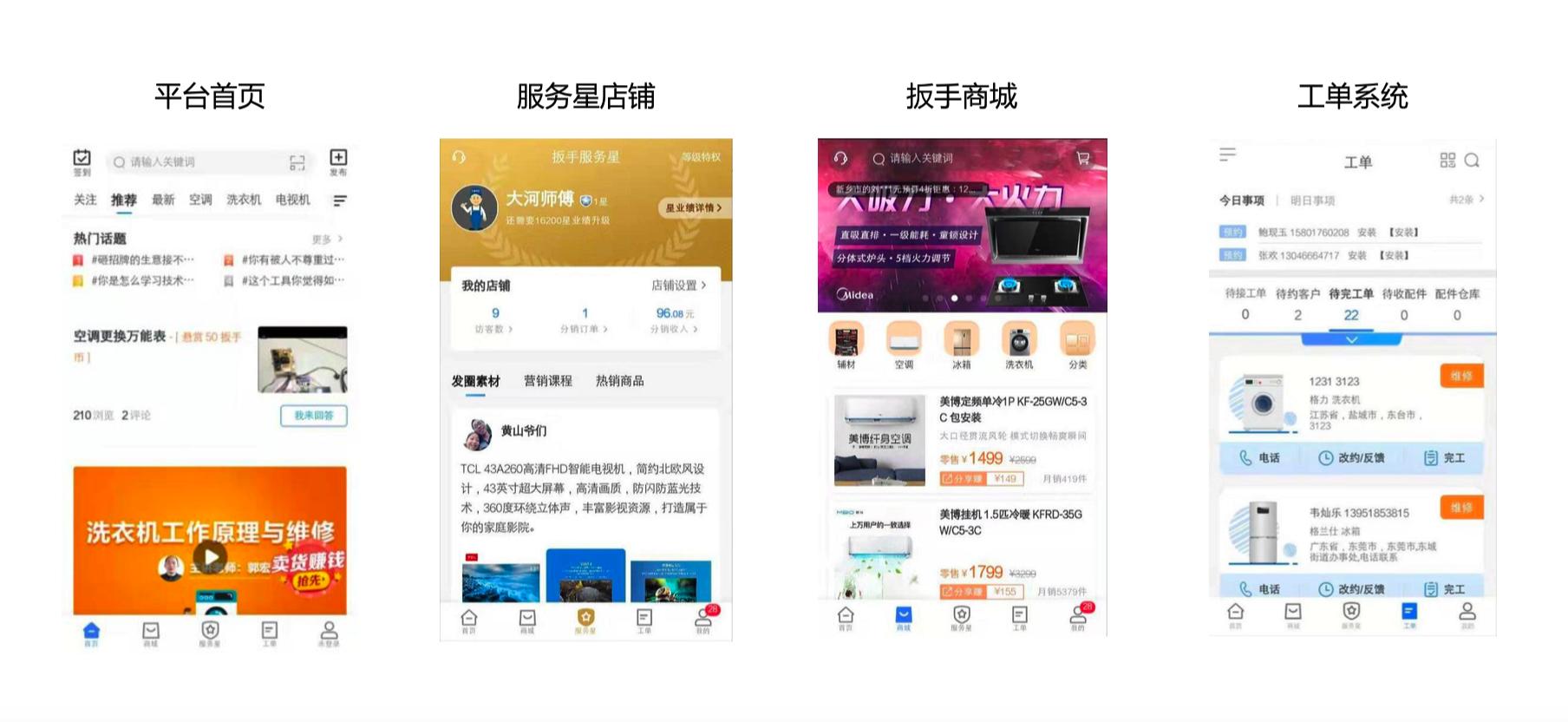 「扳手」于 2015 年 5 月上线,是一款家电服务工程师的社群 app ,为工程师提供工具、内容及社交等服务,并联合厂商提供服务工单、配件辅材,谋求逐步发展为S2B2C第三方家电安装平台。集中在珠三角、长三角的一二三线城市,「扳手」线下销售、安装、维修涉及品类包括空调、冰箱、洗衣机、电视、厨电、净水净风、智能家电等。目前企业已完成B轮融资。