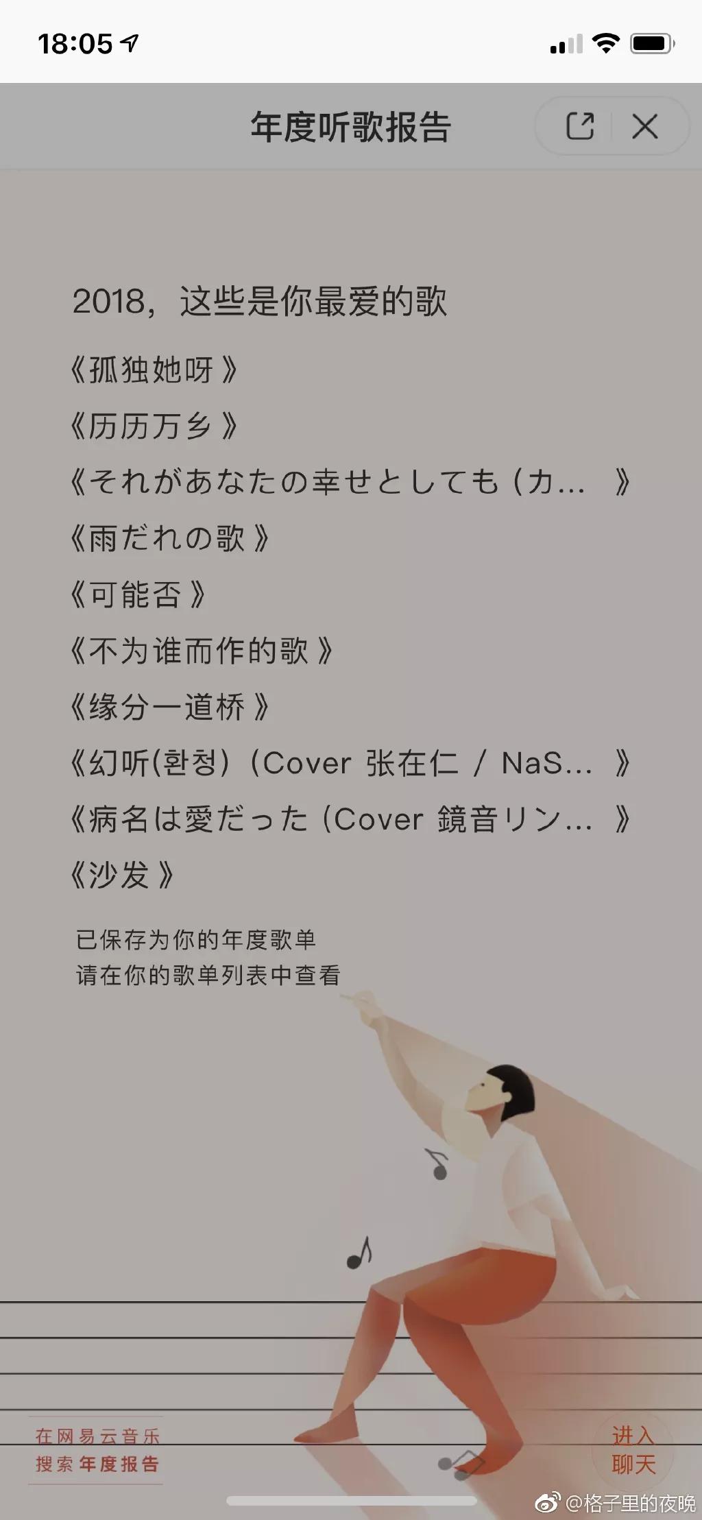格子的2018年度网易云音乐歌单,他在微博写到,“看起来还不错,挺积极的。。。”