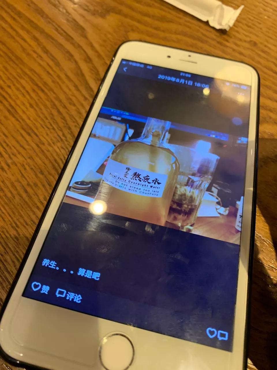 8月1日,格子在朋友圈发了一张图,一瓶子写着“熬夜水”三个字,配文写到:“养生。。。算是吧。”他高血压有一年多了,数值是190,在他这个年龄段,正常血压在80~120。