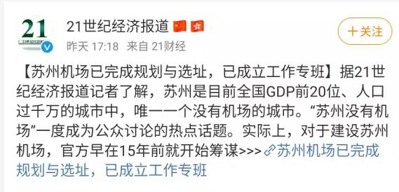 对苏州人民而言,自贸区消息恐怕还不如终于建机场来的更有刺激度。