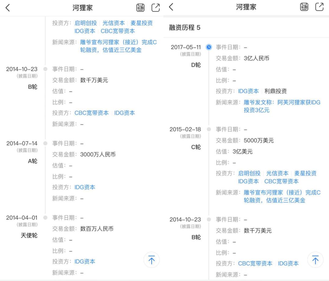 河狸家历次融资来源 / 天眼查