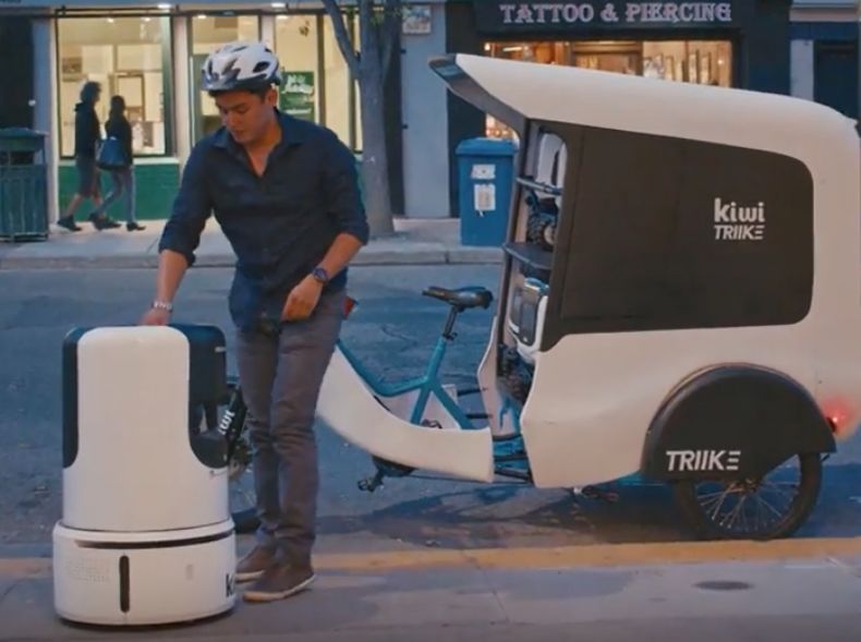 负责接收「餐厅机器人」收集食物的半自动三轮车 KiWi Trike。