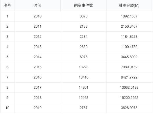 36氪6月底发布的《2019 年中创投报告》中提到:2019年1月-6月17日,国内一级市场共计发生2787笔投融资交易(不含并购、上市),总计交易金额接近3629亿元人民币,投融资热度已经降到五年来的最低点。