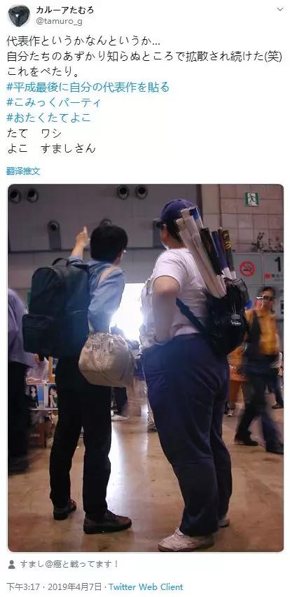 所以,在2019年4月7日Tamuro贴上的那个所谓的新照片,才不是什么“宅男漫展之光”的正面照,恰恰相反,这个“正面照”才是他们这身行头的真正目的——Cosplay。