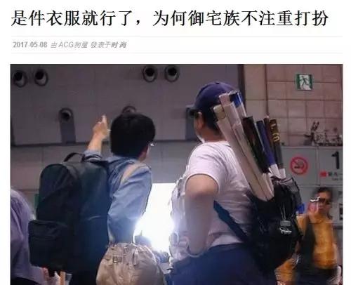 照片中的两人身上的宅男T恤、背后背着的同人画等各种道具,这些所有散发着浓厚的死宅气息的东西,其实都是都是为了角色扮演游戏中那两个虚拟宅男形象的工具。
