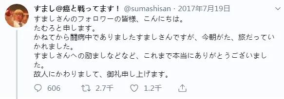 2017年5月4日,Sumashi终于发了一篇跟二次元无关的推特。