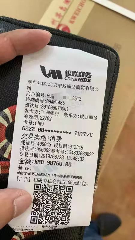 在“酒狗”的世界里,这已经算克制之举。中国高端白酒的售价早早过千,消费群体里不乏有钱人。刘思远是一位生活在北京的设计师,常年混迹在社群,他给我转发了一张酒友群里的照片,这张98760元的小票,是一位山东临沂的酒友前几天刚刚开车到北京来消费的,其中包括一瓶售价63800元的巴拿马百年金奖茅台。