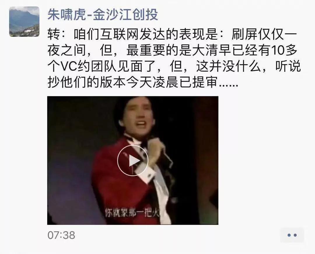和以往多数现象级App一样,“ZAO”也引发了投资圈的关注,被称为投资界老炮的朱啸虎今早就发了一条朋友圈表示,目前已经有10多家VC主动约“ZAO”团队,同时模仿“ZAO”的开发者们已经把复制版应用提交审核了。