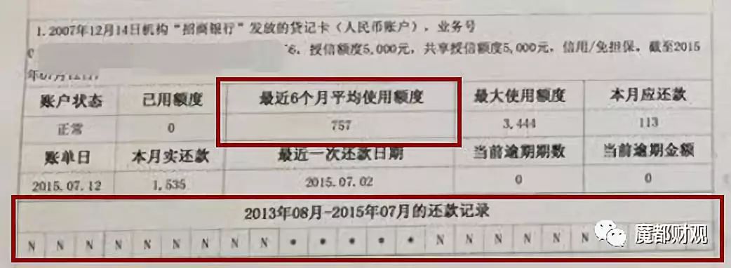第一个要提示的是,那些喜欢玩卡的朋友要格外注意“最近6个月平均使用额度”栏位。这里面反映了你半年内信用卡的消费额度。如果你信用卡平均使用额度特别大,银行会在新发放贷款的时候会扣掉这些已有负债。