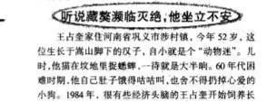 1998年9月4日,大河报发表《千里寻藏獒,中原听咆哮》,把本来只是为了赚钱而走进西藏的王占奎,称为中国抢救保护藏獒第一人。