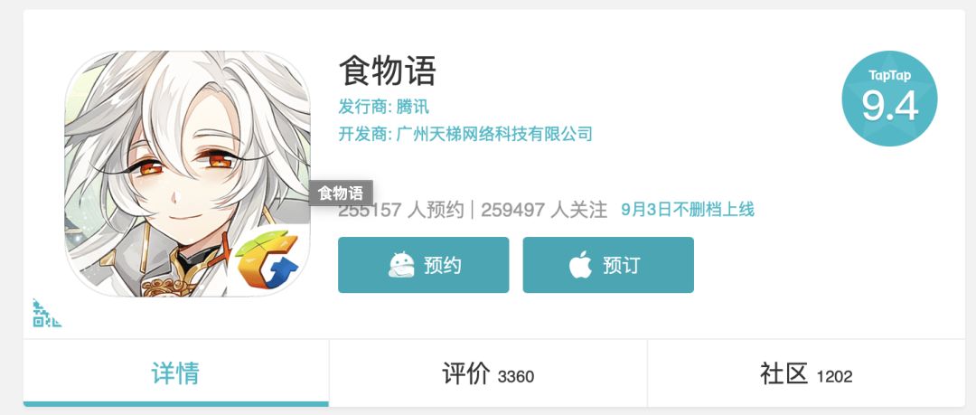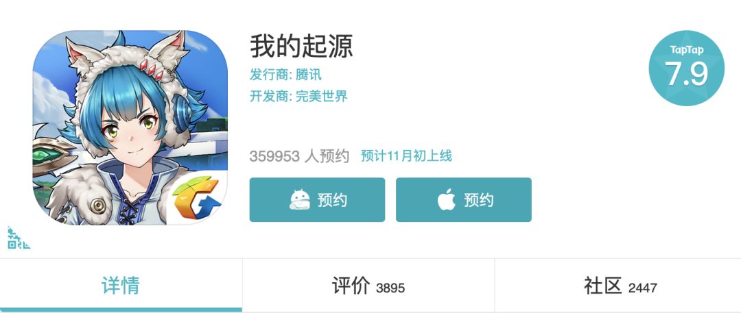 具体产品层面,今年9月的《食物语》《我的起源》将成为三季度腾讯的公测的最后两个游戏,这款游戏目前在TapTap评分分别为9.4和7.9,预约人数则都在30万人上下。