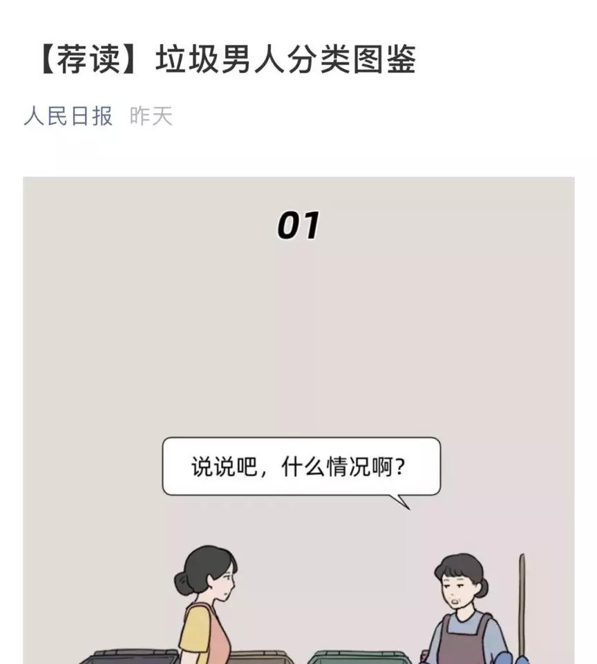 视觉系旗下的条漫号「她总」在七月初发布了一篇名为《垃圾男人分类图鉴》的文章,该文章在七天内阅读破1500万,甚至被「人民日报」公众号转载,为「她总」带来20万新增粉丝,而这仅仅是「她总」的第二篇推文。