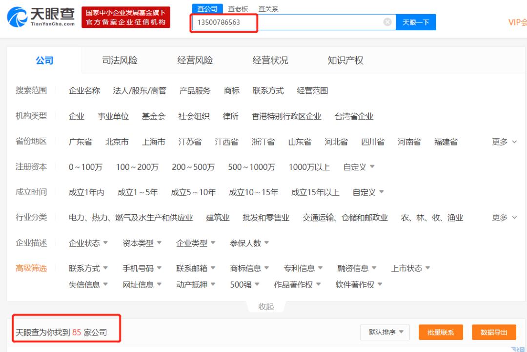 在天眼查进一步深挖之后发现,其相同的邮箱和电话居然还注册了80多家公司,除了玛爱文化,背后可能还藏着一个无比庞大的诈骗产业链。