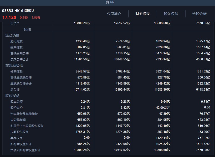 有息负债6786亿,同比降低567亿,下降幅度7.71%,这主要是2017年的1300亿对赌融资,偿还了部分债务。应付贸易账款及其他应付款项高达5543亿,同比增长1549亿,增长幅度38.78%。预收客户垫款+合约负债是1858亿,同比减少820亿,下降幅度30.65%。恒大的债务结构在恶化。