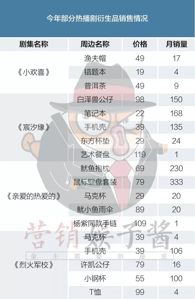 这也弥补了自行开发的剧集衍生品传播度有限、实用性不强的弱势。借助品牌的曝光力度,衍生品的传播范围会更加广泛。同时,品牌的商业链条相对成熟,衍生品的实用性、美观性、质量均能得到最大化的保障。
