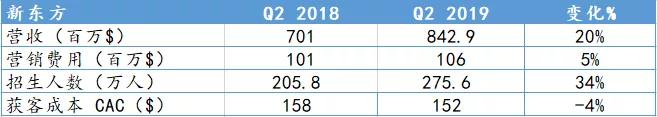 相比之下,新东方的获客成本则下降了10%,但是营收增长了20%。