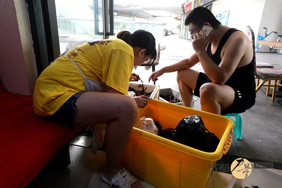 为了活下来,一些同行开始想办法压成本,“有条件的商户,趁虾子便宜时,大量冷冻存货。”也有用辣椒精代替辣椒、用老姜代替嫩姜,用便宜的小花甲,代替贵的大花甲。