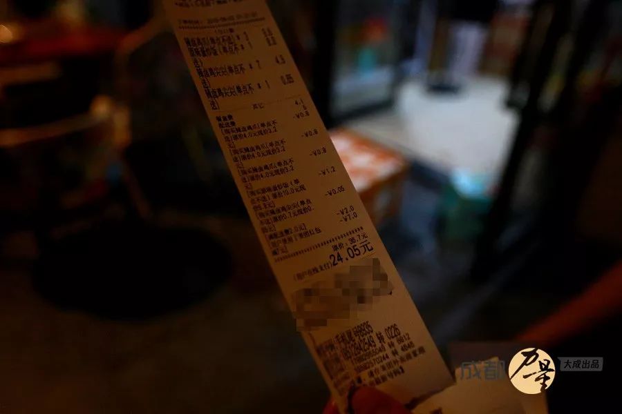 仔细看完之后,笑容凝固在脸上,鸡爪4只、蛋炒饭1份,鸡尖8个,算上折扣,顾客支付24.05元。