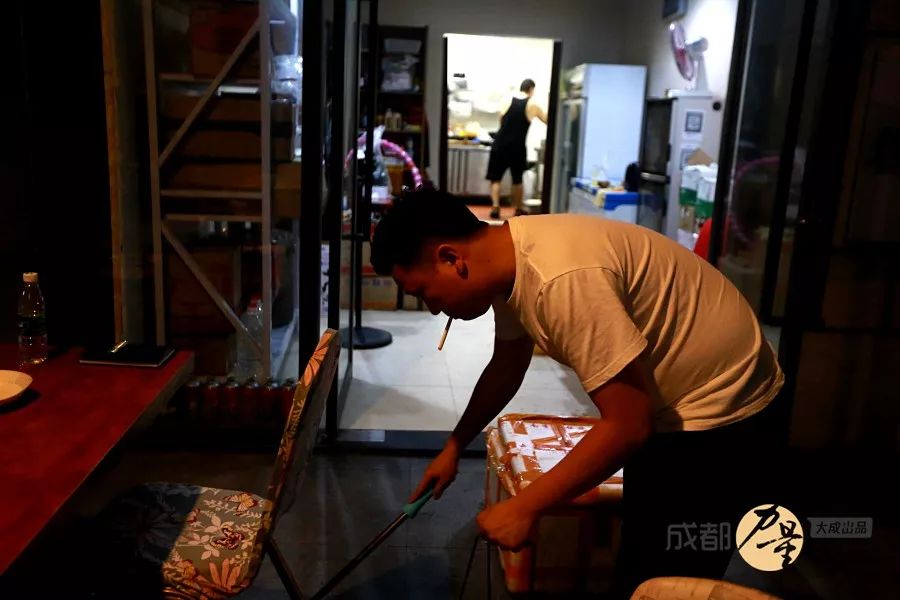 早上5点,金楠天街D馆,“卤迅”门口,陈爽正打扫卫生,准备打烊。
