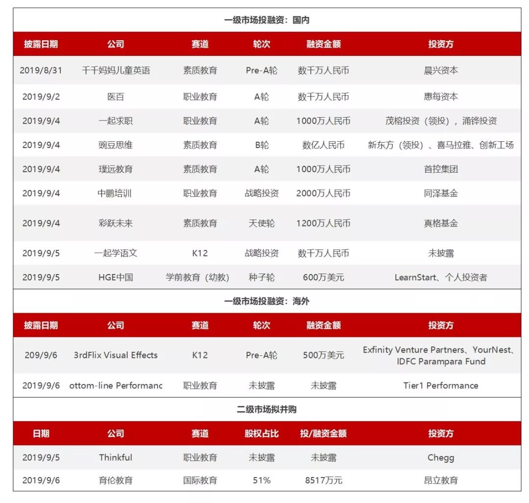 本周国内融资案例9起,集中在素质教育与职业教育赛道 | 教育周观察