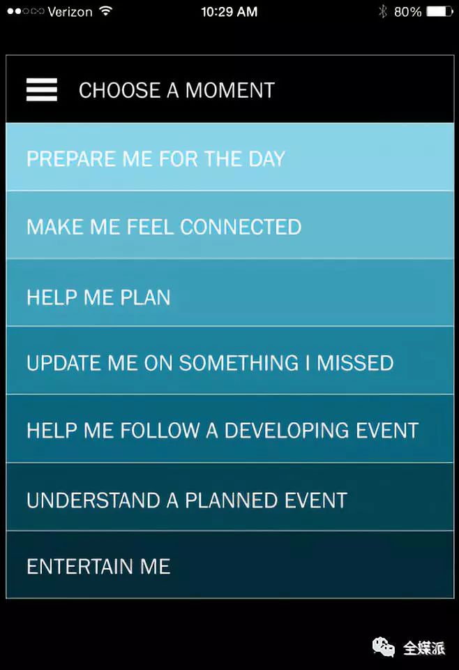 它最初的目标受众是年轻的、数字阅读用户,通过简短和精心策划的内容(更贴近对话和口语)来吸引年轻受众。为了解决用户面对海量文章选择困难的痛点,NYT Now拿出了纽约时报的秘密武器:极为优质的选题和编辑能力。 文章从“纽约时报+全网”进行故事选材,打破界限的选择令很多用户感到惊喜 。在它最火的时候,NYT Now甚至被夸赞为“世界上最好的‘博客’”。