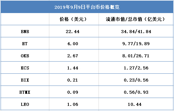 平台币市值概览