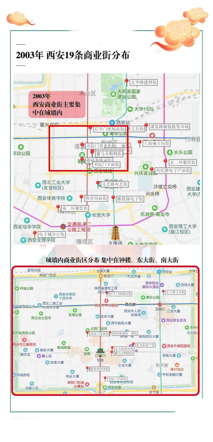 为了疏解西安过度集中的商业格局,西安市政府一度出台很多商圈建设方案,2004年,西安市商贸局曾制定2004年-2020年西安商业网点发展规划,计划在西安打造80多个商圈,激活全城商业生态。