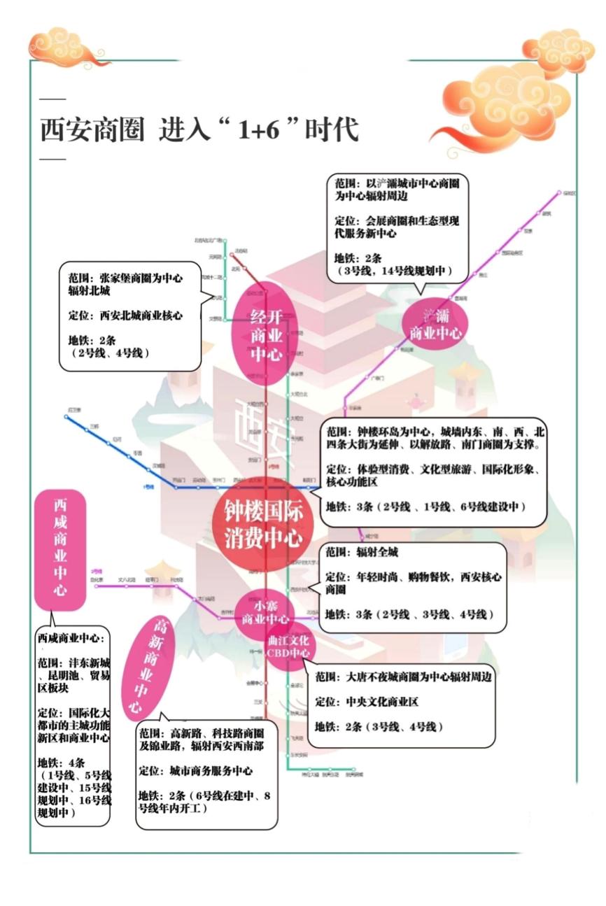 可以预见的是,在未来三年中,即将开通、建设的地铁6号线、5号线、9号线、13号线还将继续拉大西安的商业网络骨架。