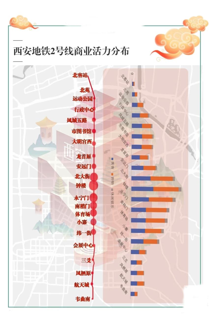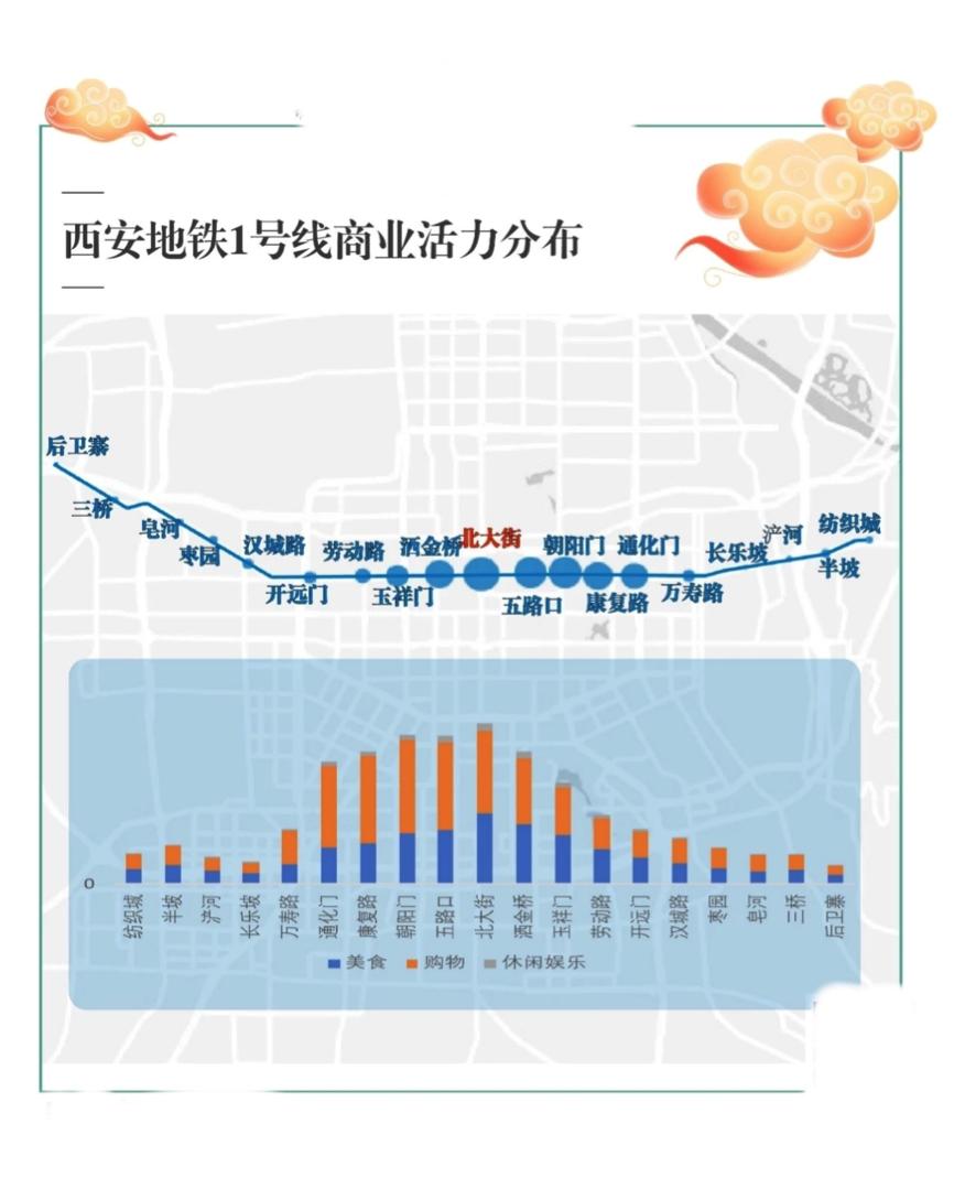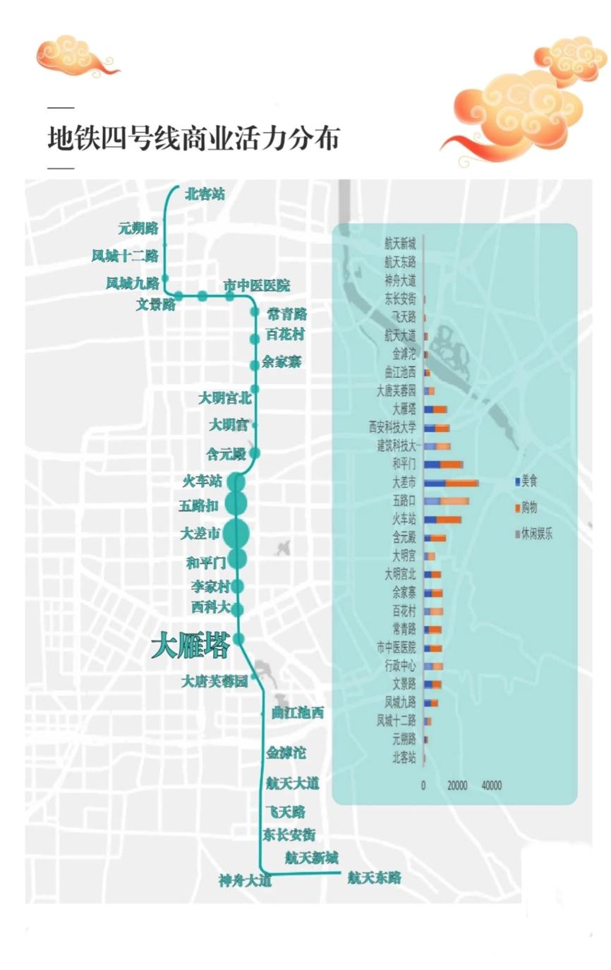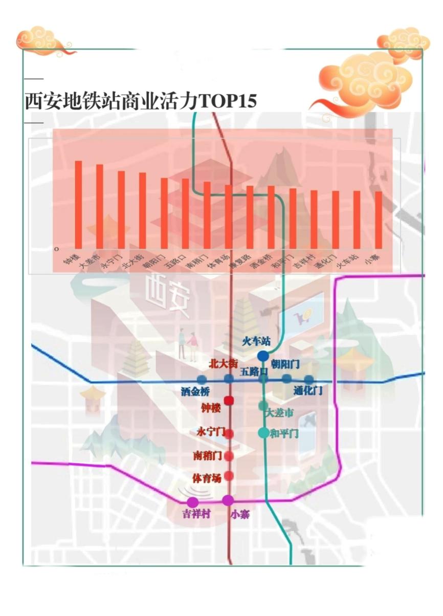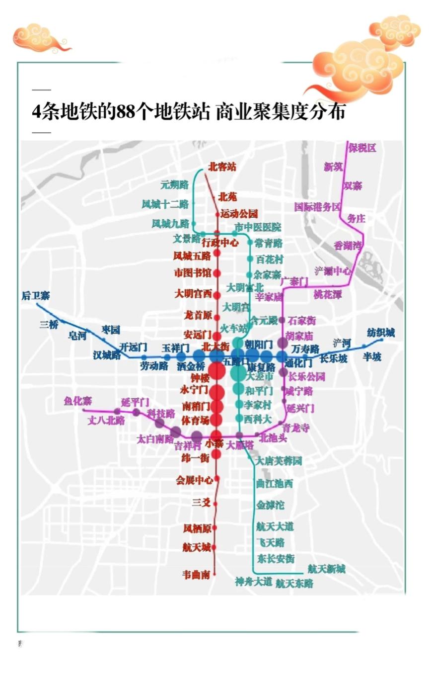 西安目前4条地铁有88个地铁站,西经智库数据显示,地铁商业活力主要集中在钟楼-小寨区域。