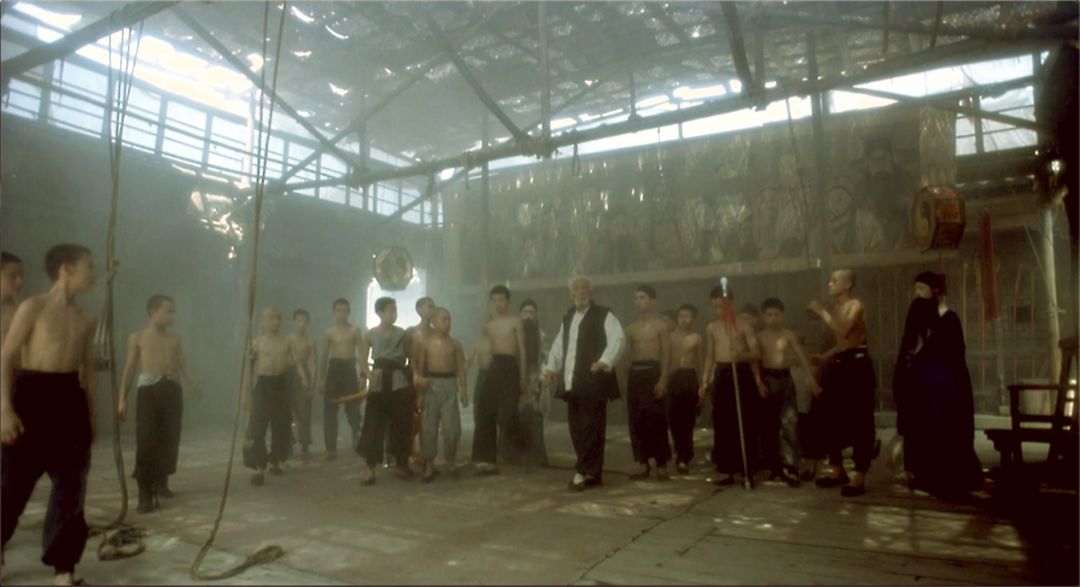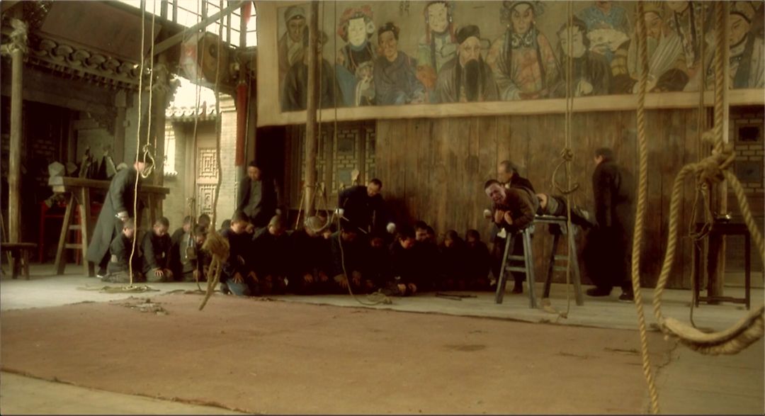 除了室内空间,还有一直悬在空中的画布,印着《同光十三绝》(画着 13 位清代同治和光绪年间的著名京剧演员)。这是关师傅京剧班子的精神支柱,成为像画中的京剧大师是他们一生的追求。