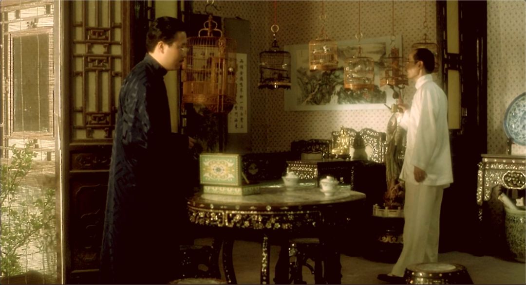 《霸王别姬》里的金鱼、鸟笼和戏台。