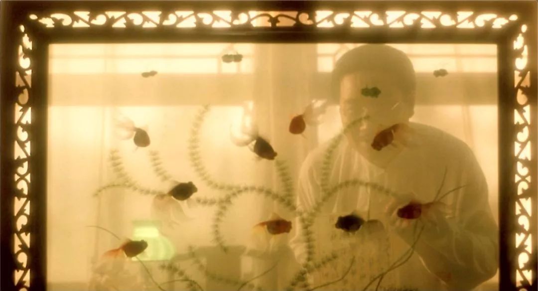 金鱼本身便是由人工培育而成的观赏性畸形鲫鱼,不是自然生长出来的。程蝶衣也是这个混乱时代的产物,自小被送进戏班,从「我本是男儿郎」,到「我本是女娇娥」,虽然已经成角儿,万人追捧,但在自我认知中仍有错位,终究都是被关在「玻璃缸」中被人观赏的。
