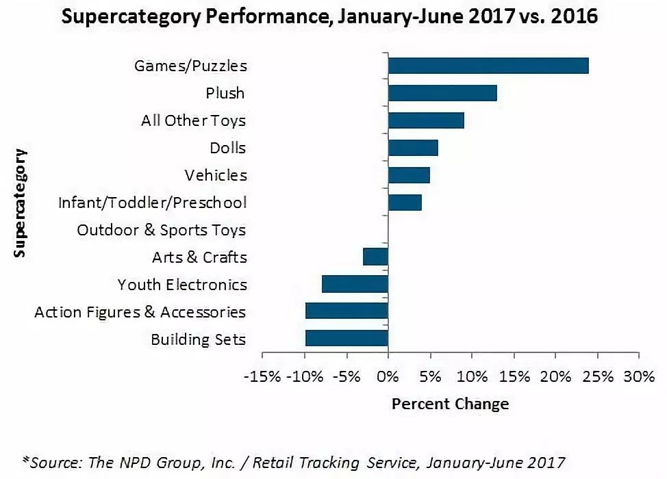 这在某种程度上也能反映出玩具消费者的口味发生了变化。游戏/解密类玩具互动性更强,而组装类玩具消耗的时间长。这说明现在的消费者开始追求玩具的互动性,而且变得缺乏耐心。