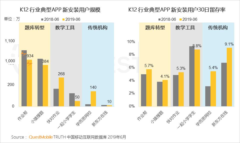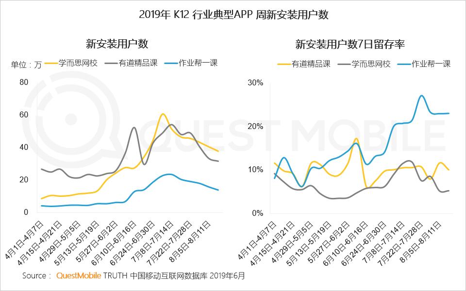 相对来说,K12用户总使用时长占据了整个在线教育总时长的30.1%,用户规模约为2.2亿,远超过词典翻译类的1.32亿、教育工具类(主要受学习强国APP拉动暴增了267.6%)0.83亿。不过,K12也是竞争最激烈的领域之一,以2019年暑期为例,低价拉客、广告轰炸……各类APP引流、导流堪称八仙过海各显神通,目的只有一个,拉新,然而,留存却成了问题……