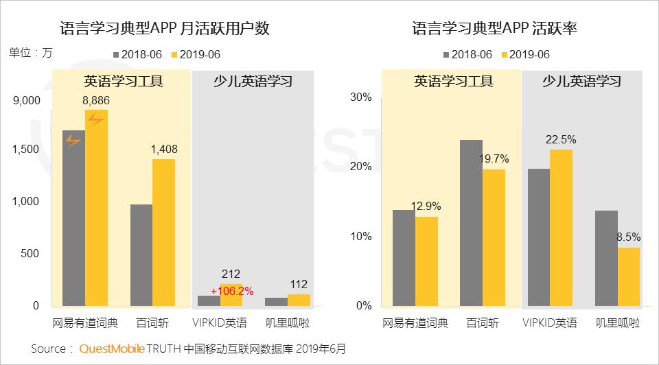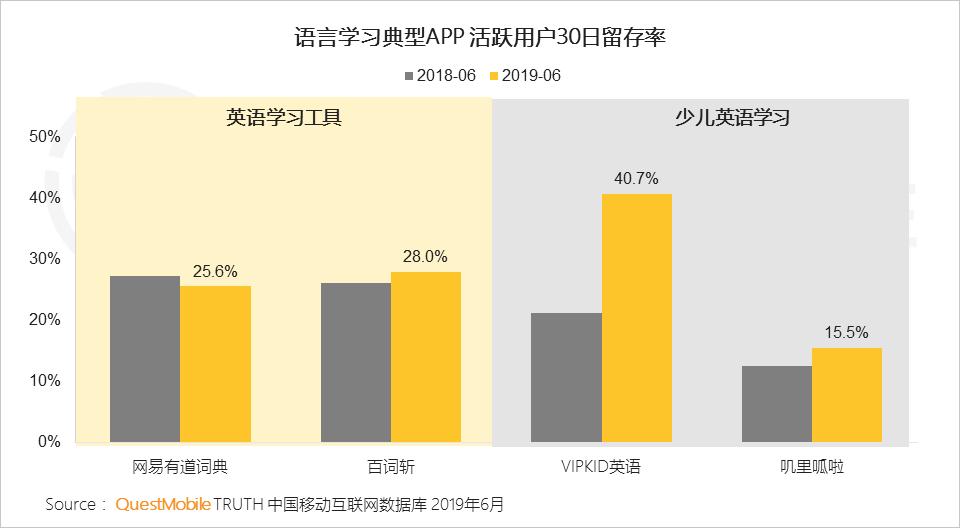 1、语言学习成在线教育优质赛道,其中英语学习工具类应用覆盖用户全生命周期,用户规模优势明显;少儿英语类应用用户更加垂直,且有明确的课程规划,其用户更加活跃,留存率更高