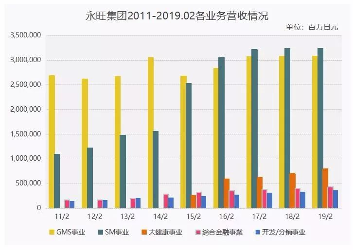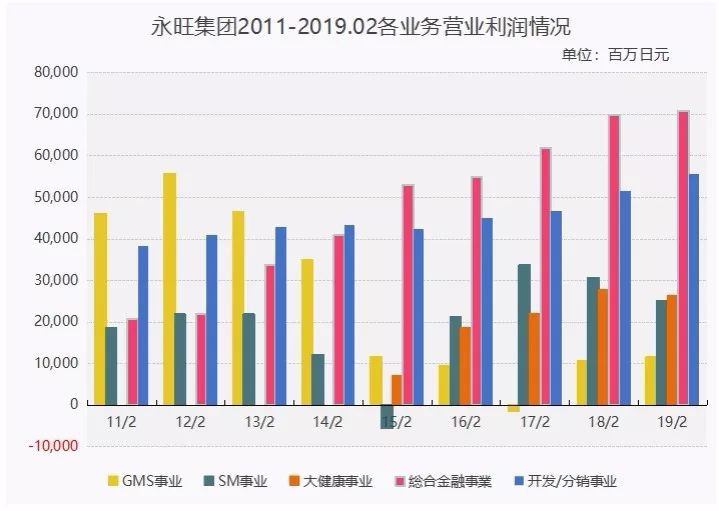 永旺集团最新数据显示,截至今年2月,占集团总营收18.7%的金融、地产开发、保健业务对利润的贡献率高达71.9%,而主营的综合百货,营收占比虽有36.2%,但对利润的贡献率仅为5.4%。