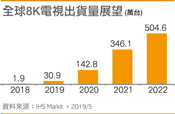 随着4K电视逐渐普及渗透,市场调查机构IHS Markit曾预测今年8K电视的出货量将增长至30.9万台。