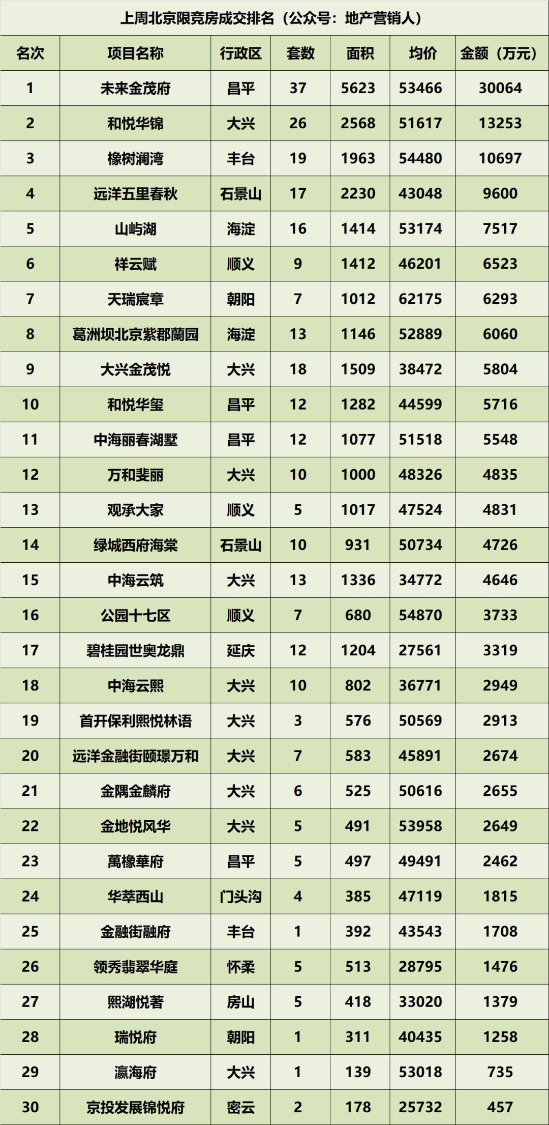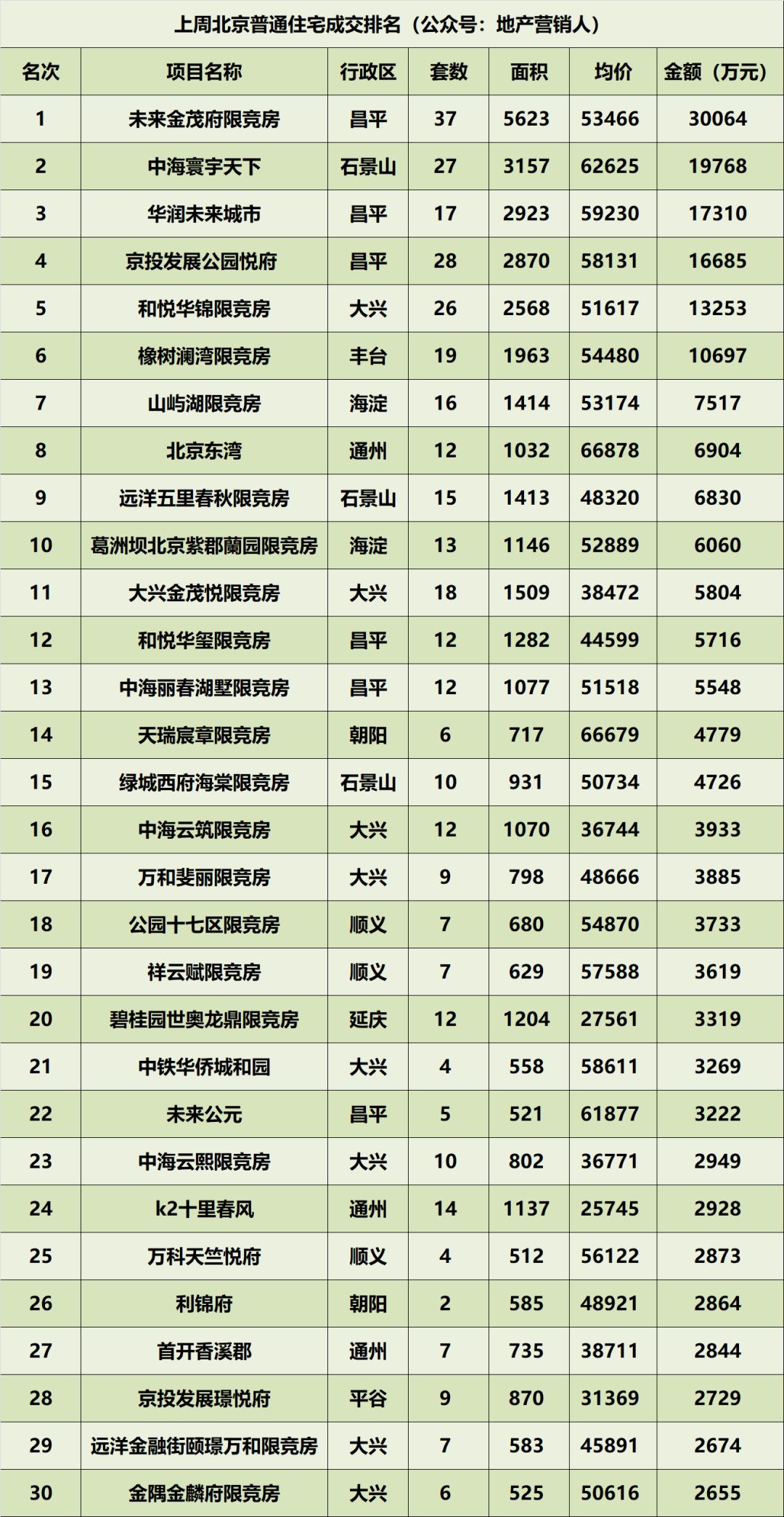 限竞房市场成交305套,成交面积3.40万㎡,成交均价47071元/㎡,成交金额16.02亿元,成交排名明细如下: