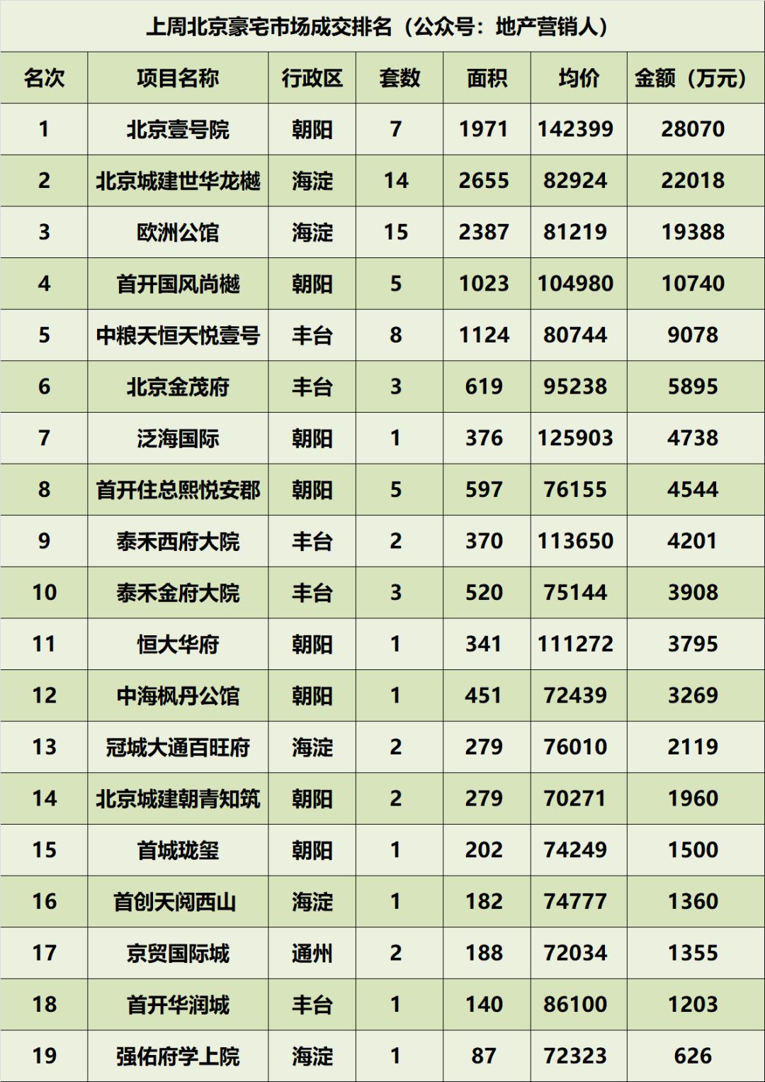 均价在70000元/㎡以上豪宅市场本周成交75套,成交面积1.38万㎡,成交均价94153元/㎡,成交金额12.96亿元,成交排名明细如下: