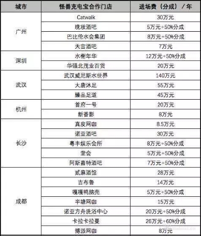 下面是界面新闻记者得到的一份资料,里面主要是怪兽充电在几个主要城市的入场费详情。