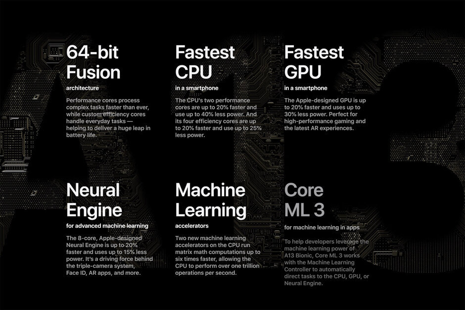 其实就芯片而言,让笔者稍感意外的是,苹果最新的A13 Bionic并未采用此前业内一直传闻,甚至是独家买断的台积电最新的7nm+ EUV制程,而是沿用了去年的7nm制程。即便如此,A13 Bionic相较于其前代的A12Bionic芯片,在CPU上,性能提升了20%,同时能耗分别降低了30%—40%;GPU上,性能提升20%,能耗降低40%;神经引擎和上一代一样拥有8个核心,性能提升20%,能耗最多可降低15%。