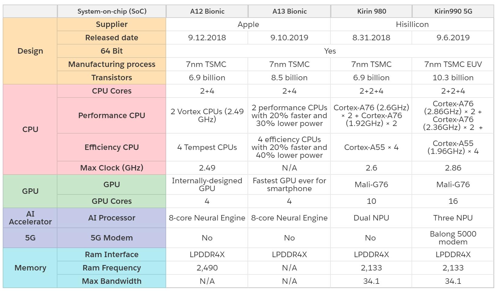 相比之下,友商采用台积电最新的7nm+ EUV制程的芯片据称与前代相比,在CPU和和GPU方面的提升并不大,甚至有业内用“挤牙膏”来形容。也许这种说法有些夸张,但从我们找到的友商对比其对手的数据看,至少在提升的幅度上,远不如苹果A13 Bionic相较其前代A12大。