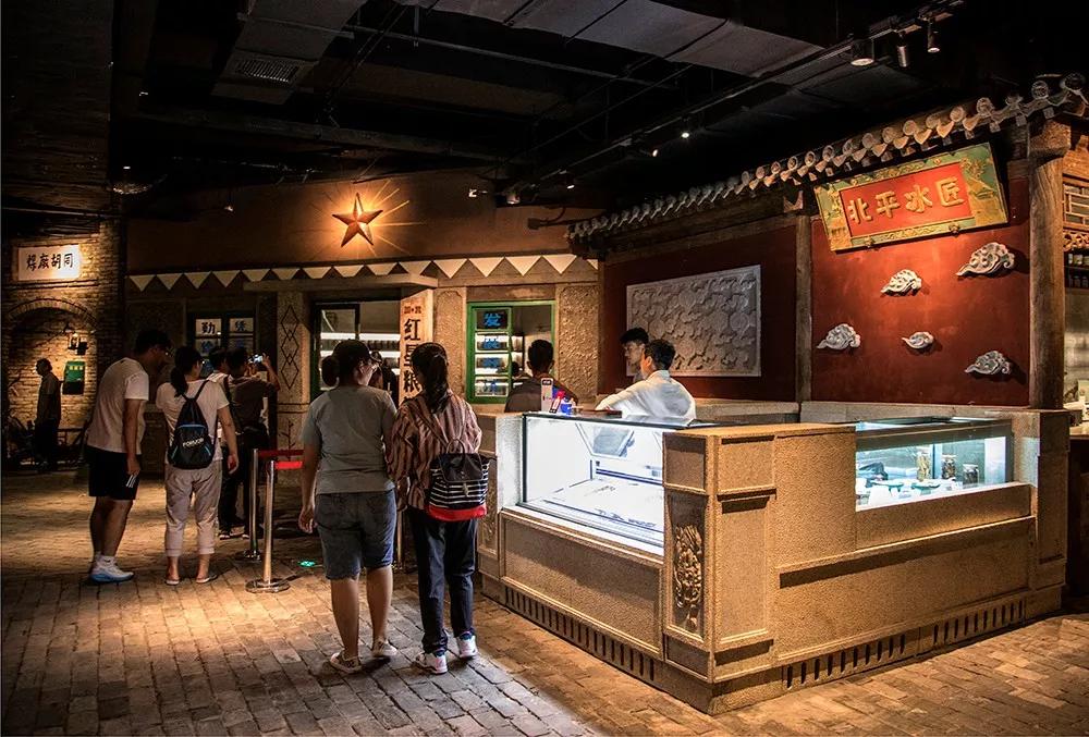 在这座地下城里,大青砖砌成的煤厂胡同、28寸大杠式自行车、马扎凳、绿皮车厢、居委会的布告栏,这些独特的场景和单品,构成了一股浓浓的怀旧气息。