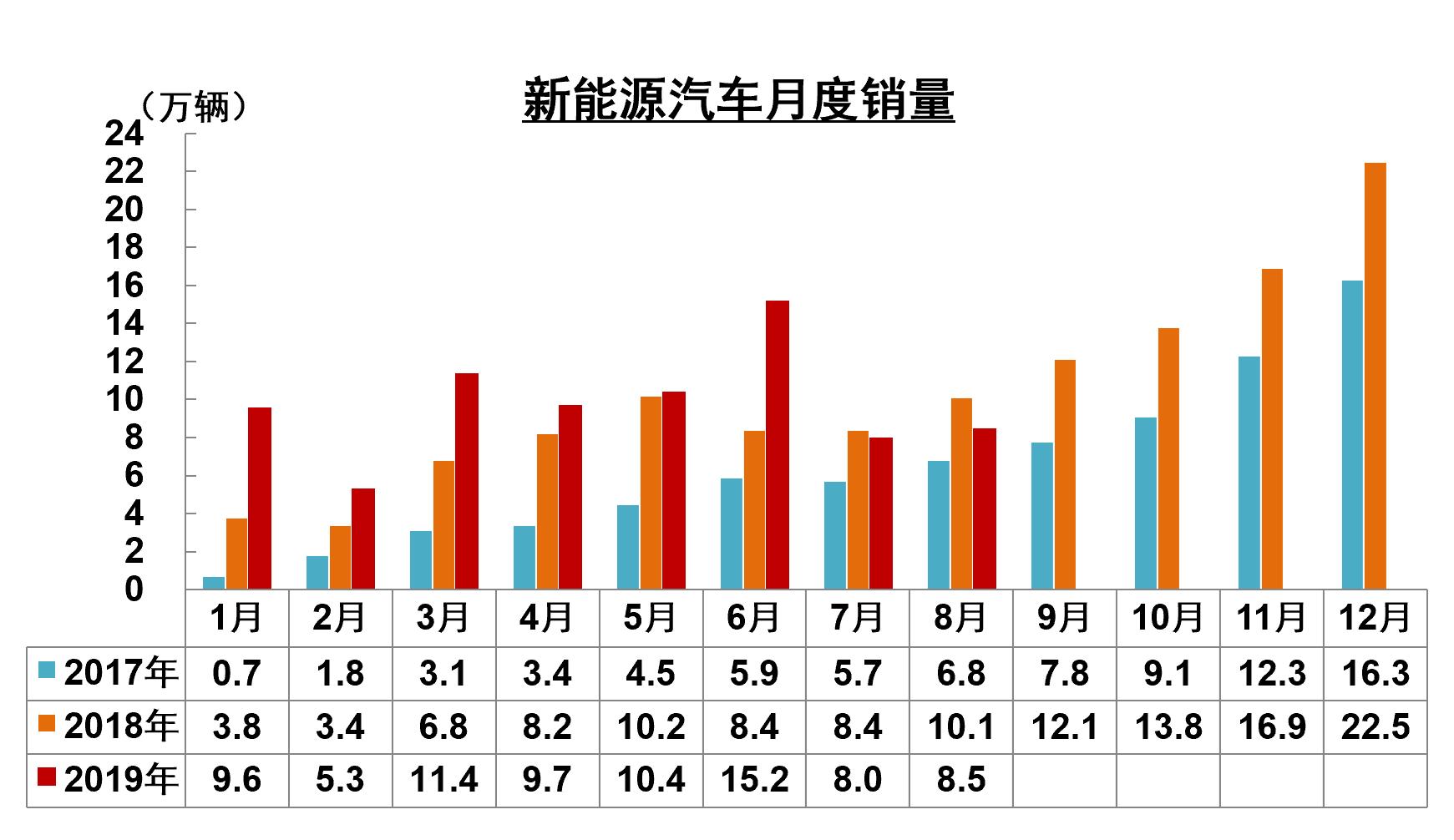 7月,新能源汽车产销量在今年首次同时踩下“急刹车”,在6月产销曾达到13.4万辆和15.2万辆的高峰后,7月锐减至8.4万辆和8.0万辆,分别同比下滑6.9%和4.7%。8月,新能源汽车产量同比下降12.1%至8.7万辆,销量同比下降15.8%至8.5万辆。