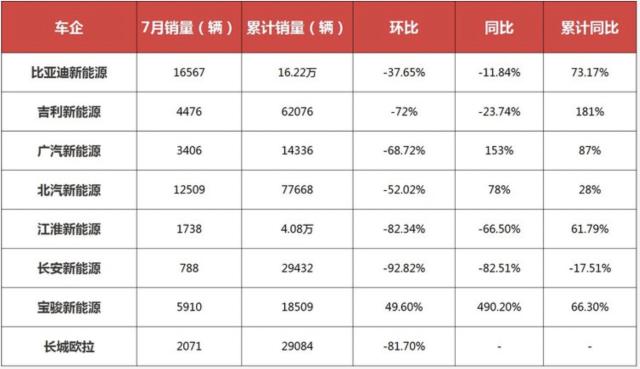 自主品牌新能源下半年开局不利