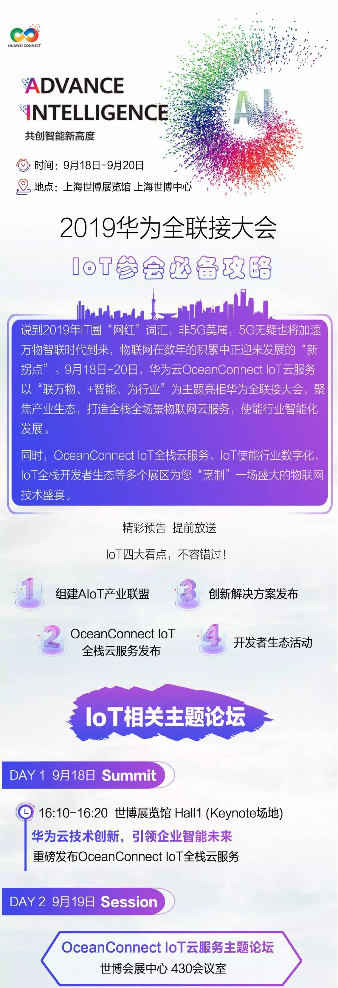 数字化升维,智能纪降临,华为预测,到2025年全球个人智能终端 将达到400亿,企业和机构的人工智能利用率将达到86%,数据利用率将达到80%,智能将像空气一样泛在。ICT作为全球数字经济和智能世界的基石,AI、云、大数据、IOT等关键技术日新月异,依托数字化平台,所有的企业和机构亟待智能加持,洞见和把握市场先机,提升运营效率。 华为聚焦ICT基础设施和智能终端,立志于将数字世界带入每个人、每个家庭、每个组织,构建万物互联的智能世界。今年9月华为将邀您再次相聚上海世博展览馆,共创智能新高度!